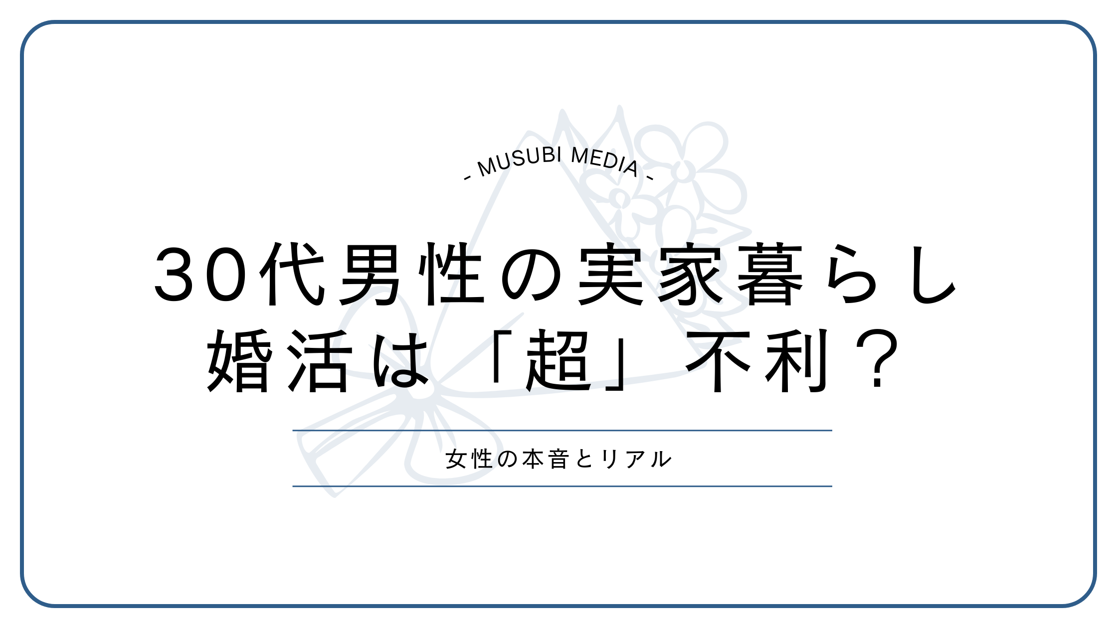 婚活を始めようとしたとき、あるいは婚活中に女性の反応を見て、「30代で実家暮らしだと、女性から引かれるのではないか」のように不安を感じている男性は非常に多いです。