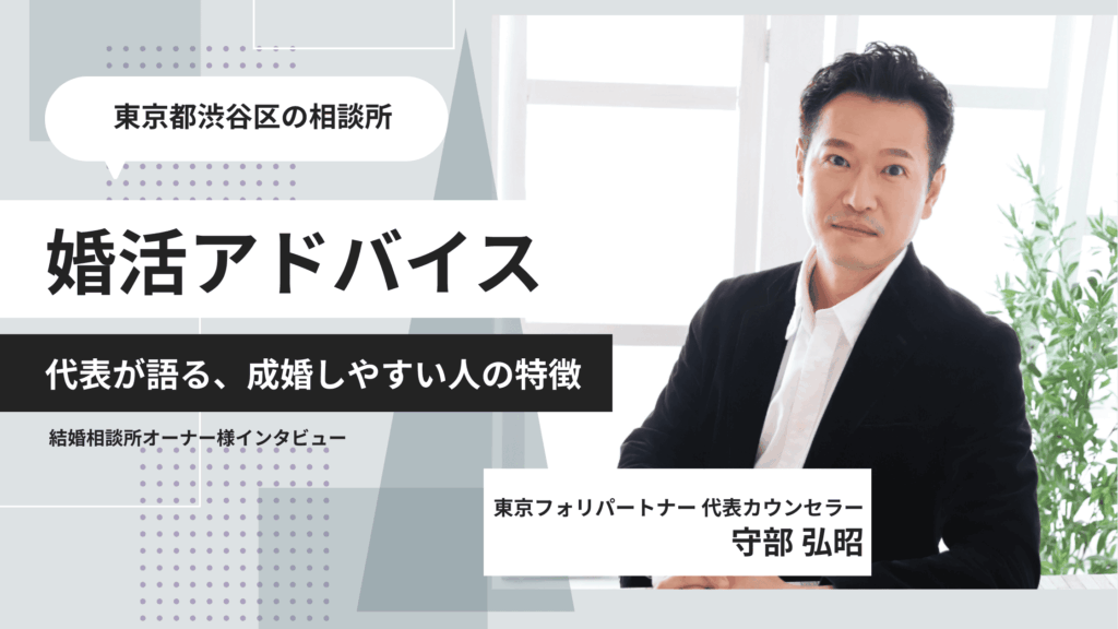 東京都渋谷区代々木に拠点を構える「結婚相談所 東京フォリパートナー」。ただお相手を紹介するだけでなく、成婚に至るまでの「関係の作り方」を徹底的に支援する独自のスタイルで、多くの成婚者を輩出されています。 今回は、他社で苦 … 続きを読む 代々木(渋谷区)の結婚相談所「結婚相談所 東京フォリパートナー」の口コミ・評判は?代表インタビュー