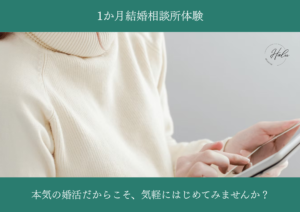 弊所の一番の強み(独自性)は、「1か月の結婚相談所体験」です。婚活に興味はあるものの、「いきなり入会するのは不安」「自分に合うか分からない」といったお気持ちをお持ちの方に向けて、本格的な婚活を実際に体験していただけるプランとなっております。