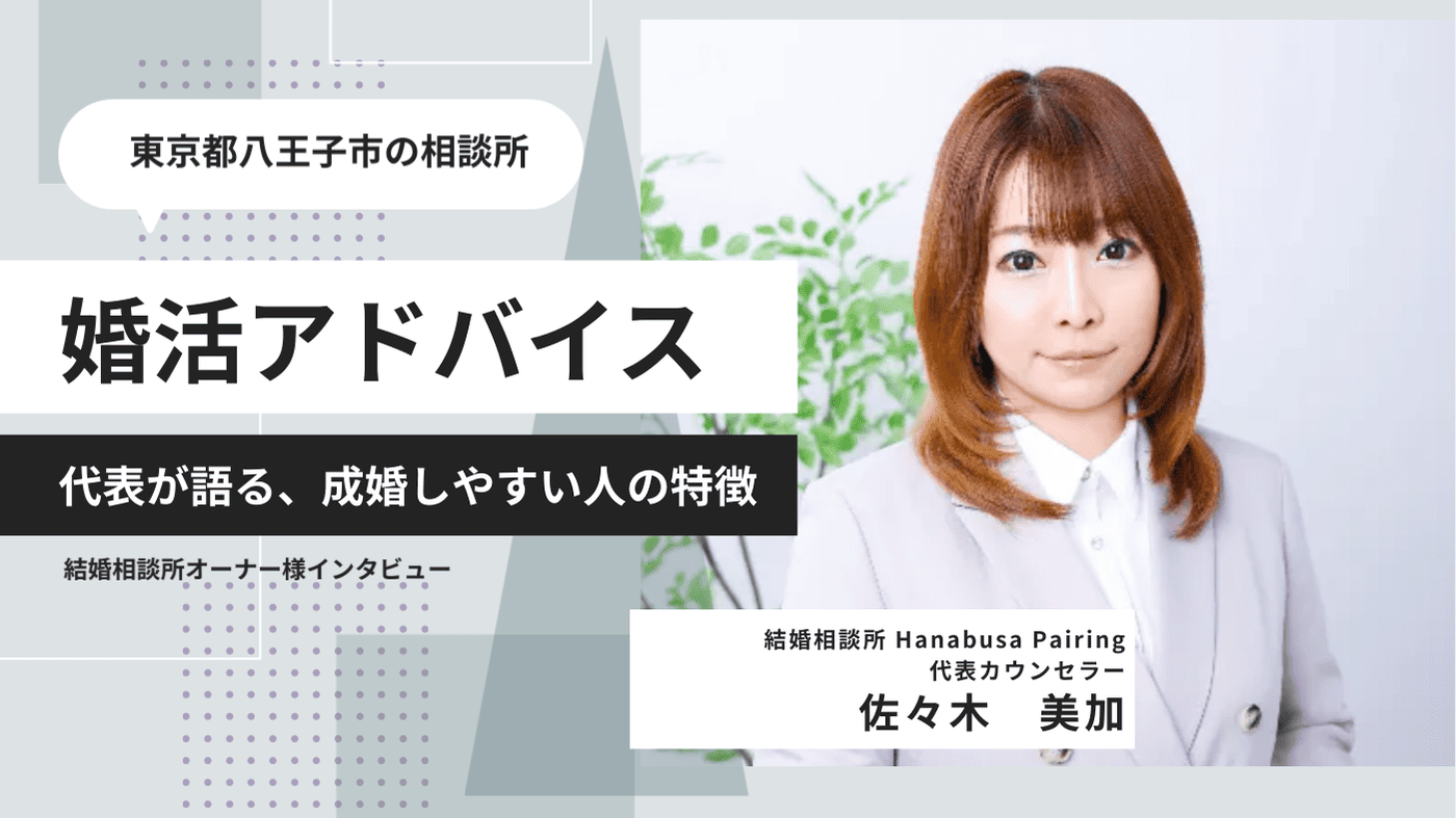 今回お話を伺ったのは、会員様一人ひとりの心に寄り添う丁寧な対話を大切にされている結婚相談所「HanabusaPairing」です。「条件」だけで判断するのではなく、その背景にある「価値観」を丁寧に言語化することで、迷いのない納得感のある婚活をサポートされています。そんなHanabusaPairingの伴走スタイルについて詳しく伺いました。