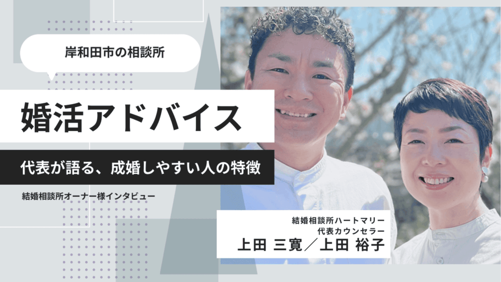 理想のパートナーと出会うためには、単に出会いの数を増やすだけでなく、自分自身の「思考」や「設計」を見直すことが近道になる場合もあります。今回は、独自の伴走スタイルで多くの成婚者を生み出している「結婚相談所ハートマリー」に … 続きを読む 岸和田市の結婚相談所「結婚相談所ハートマリー」の口コミ・評判は?代表インタビュー